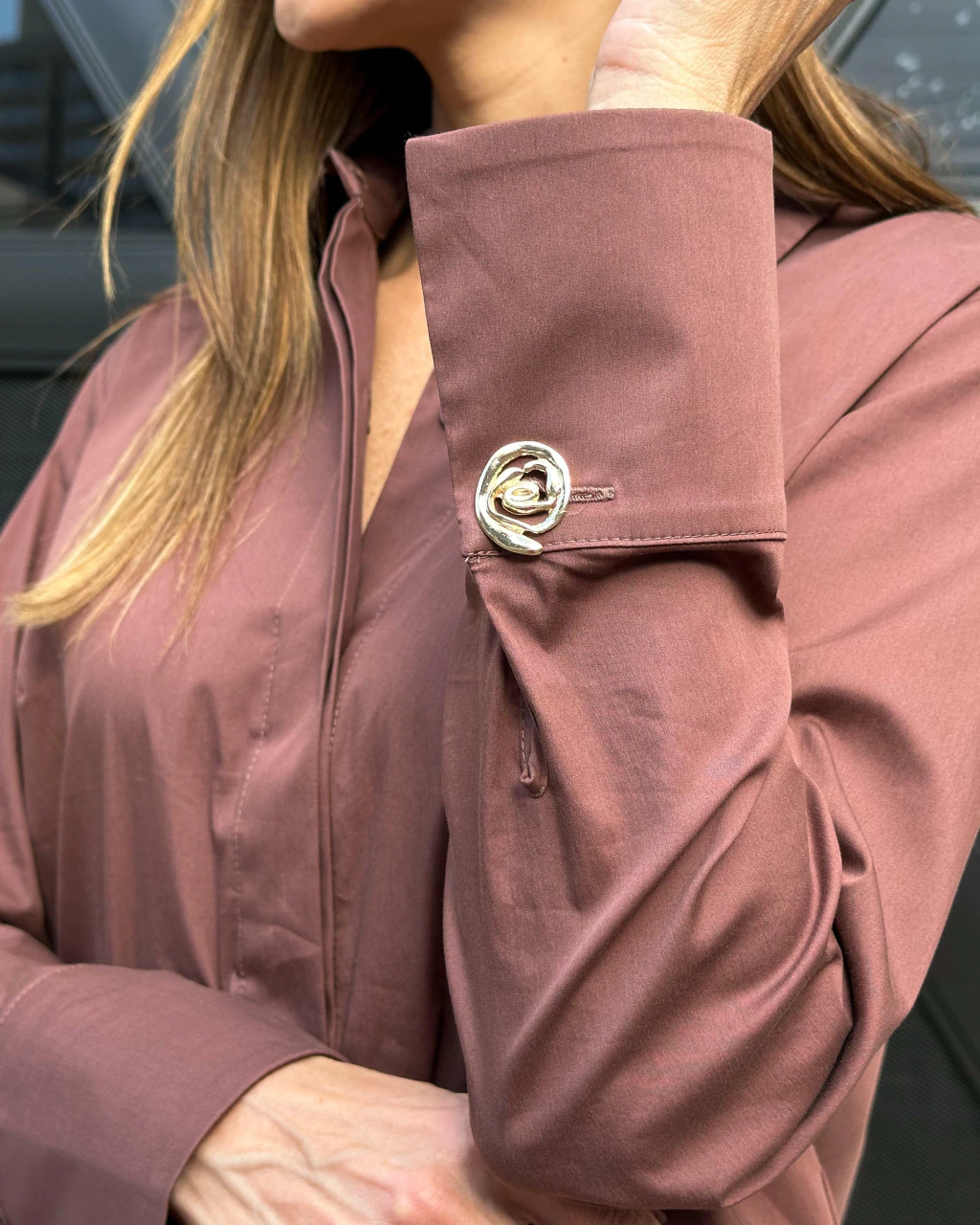 Blusa. Modelo reto com detalhes de babados na manga e fechamento com botão frontal.