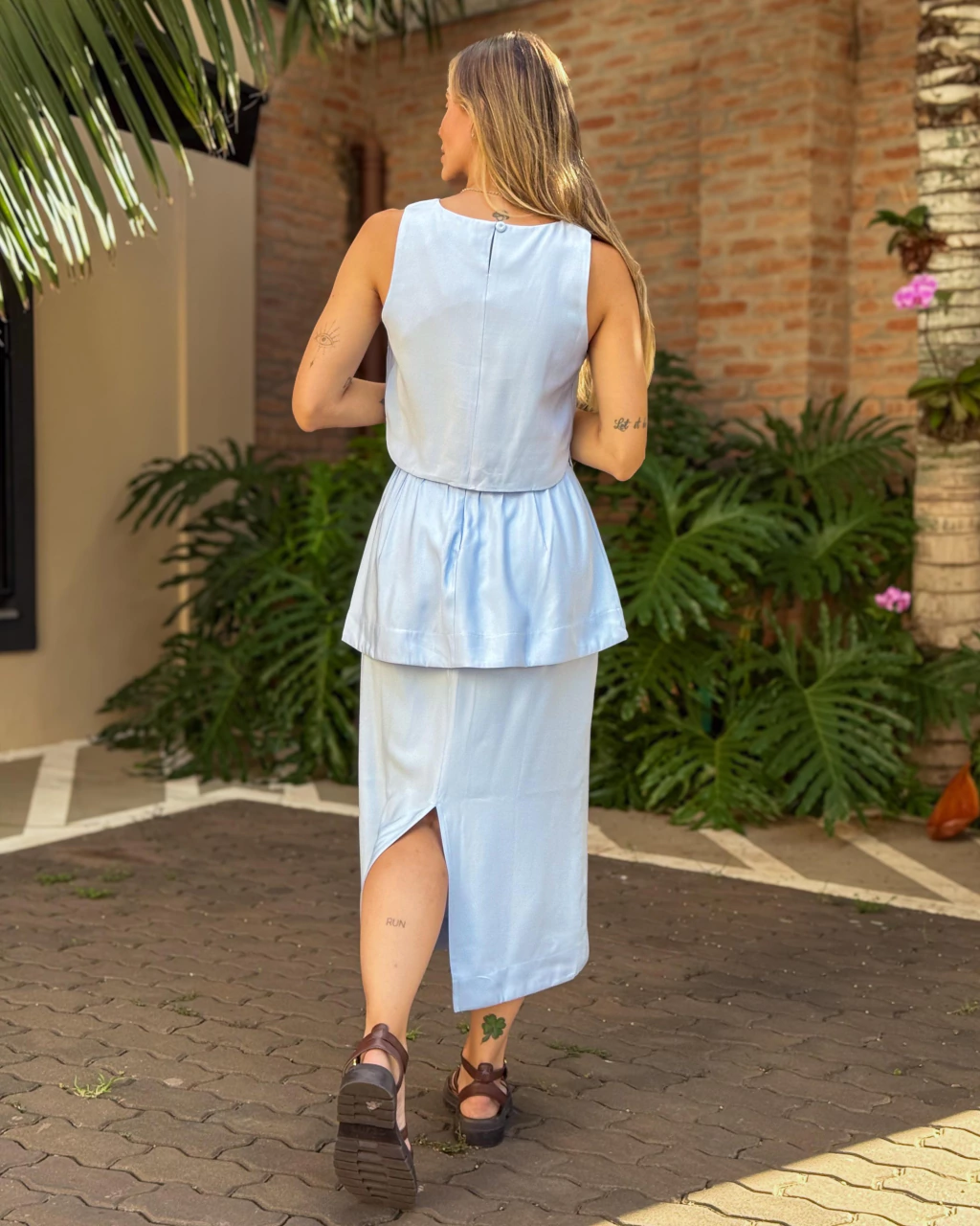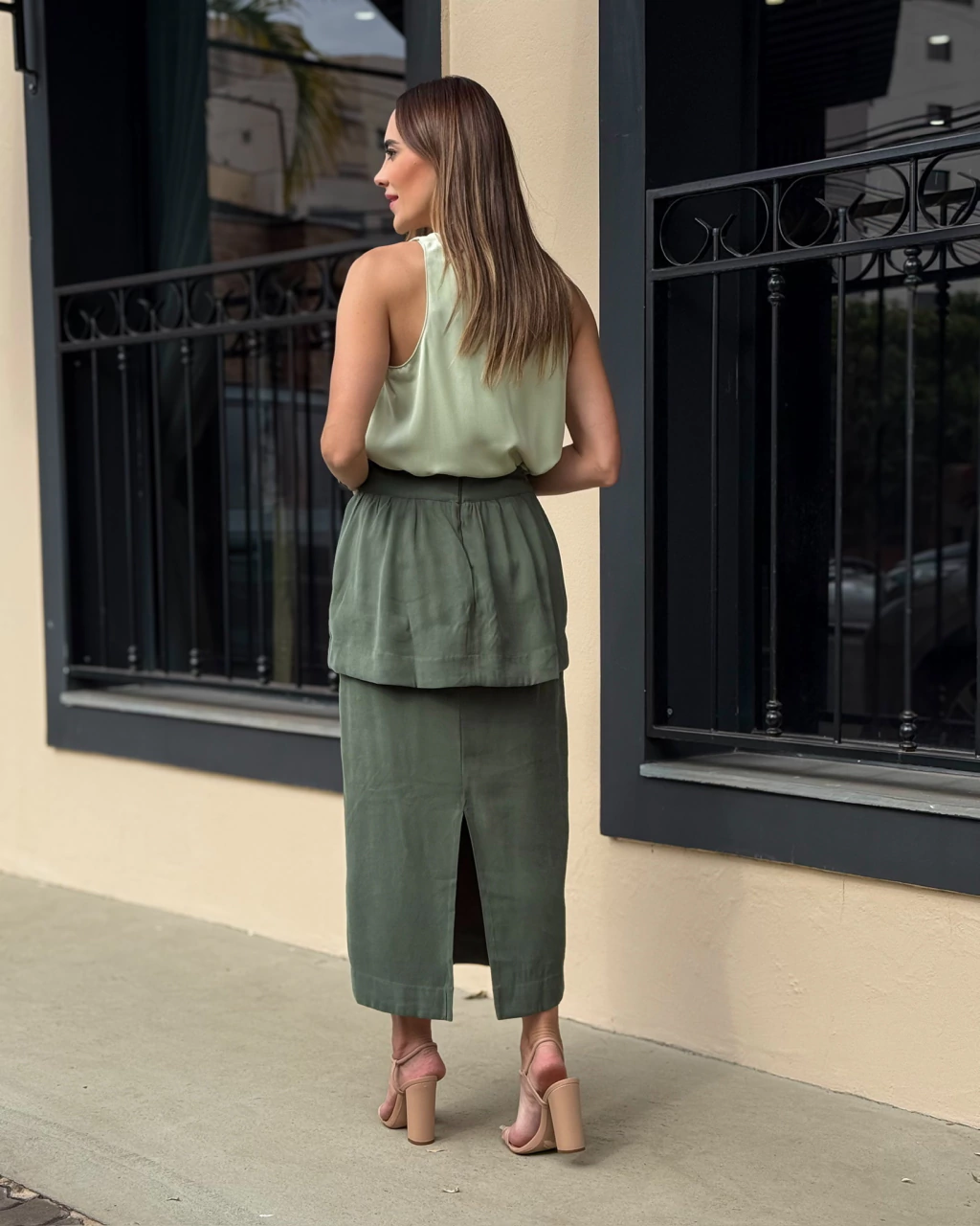Descubra a elegância da saia midi peplum em tecido Tencel, que une conforto e estilo com sofisticação. O design apresenta uma pala peplum que valoriza a silhueta e uma charmosa fenda nas costas, ideal para um toque de sensualidade discreta. O fechamento em zíper nas costas garante praticidade e caimento perfeito. Perfeita para ocasiões especiais ou para transformar seu look do dia a dia com muito charme!