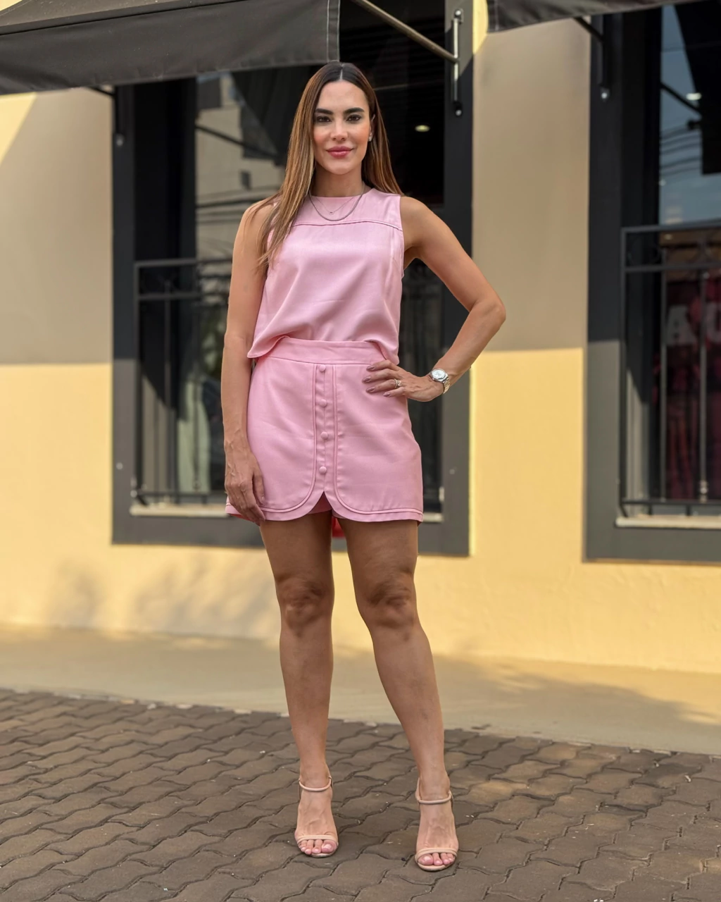 Short Saia. Modelo com fechamento com zíper na lateral.
