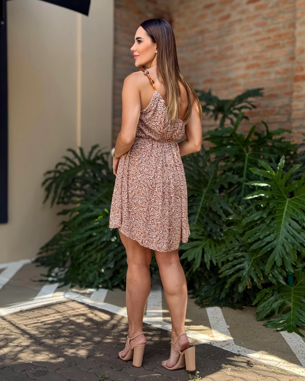 Vestido de alça regulavel de cintura baixa e fechamento em zíper.